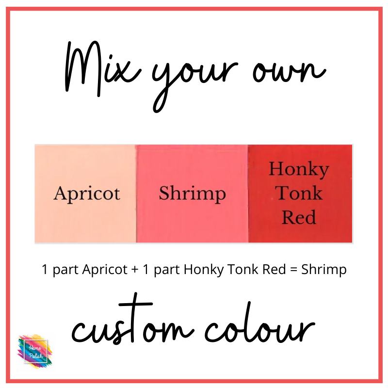 Dixie Belle Paint can be mixed and matched to create any custom color you can imagine! 1 Part Apricot + 1 Part Honky Tonk Red = Shrimp